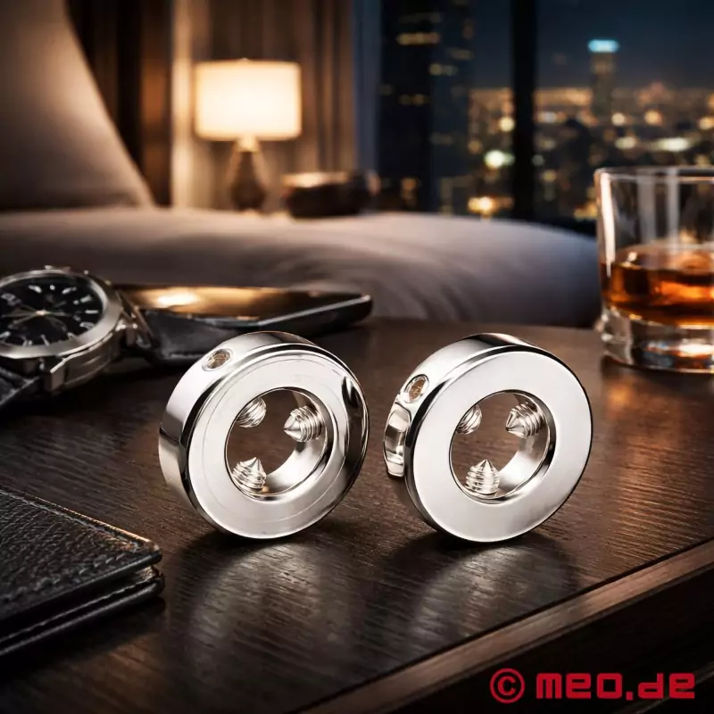 Oletko valmis pieneen kipuun ja suureen nautintoon? Sitten sinun kannattaa tutustua Dr Sadon piikkirenkaisiin nännirenkaisiin! Nämä nännirenkaat ovat ainutlaatuinen BDSM-tarvike, joka on kehitetty erityisesti voimakkaan nännistimulaation ystäville. Nämä korkealaatuisesta ruostumattomasta teräksestä valmistetut nännirenkaat tarjoavat täydellisen tasapainon nautinnon ja kivun välillä.