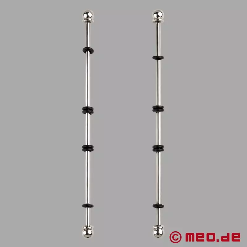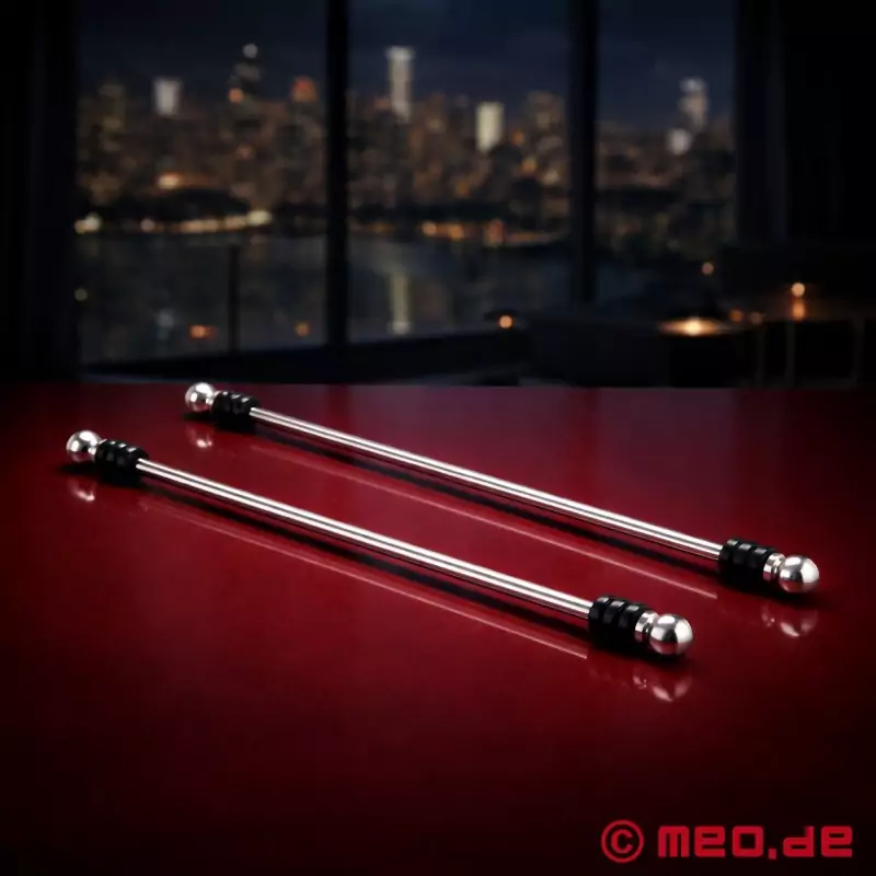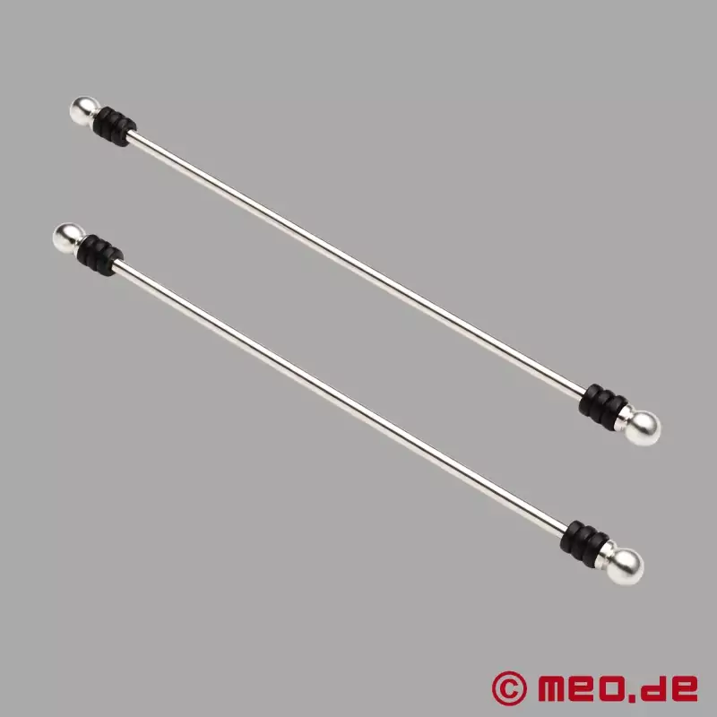 Unohda kaikki, mitä tiesit nännien stimulaatiosta - tässä tulevat MEO:n Nipple Sticks! Tutustu jännittäviin mahdollisuuksiin, joita tyylikkäät ruostumattomasta teräksestä valmistetut Nipple Sticks tarjoavat sinulle. Tämä kiiltävästä metallista valmistettu korkealaatuinen setti on sekä houkutteleva koru nänneille että erittäin tehokas BDSM-lelu.
