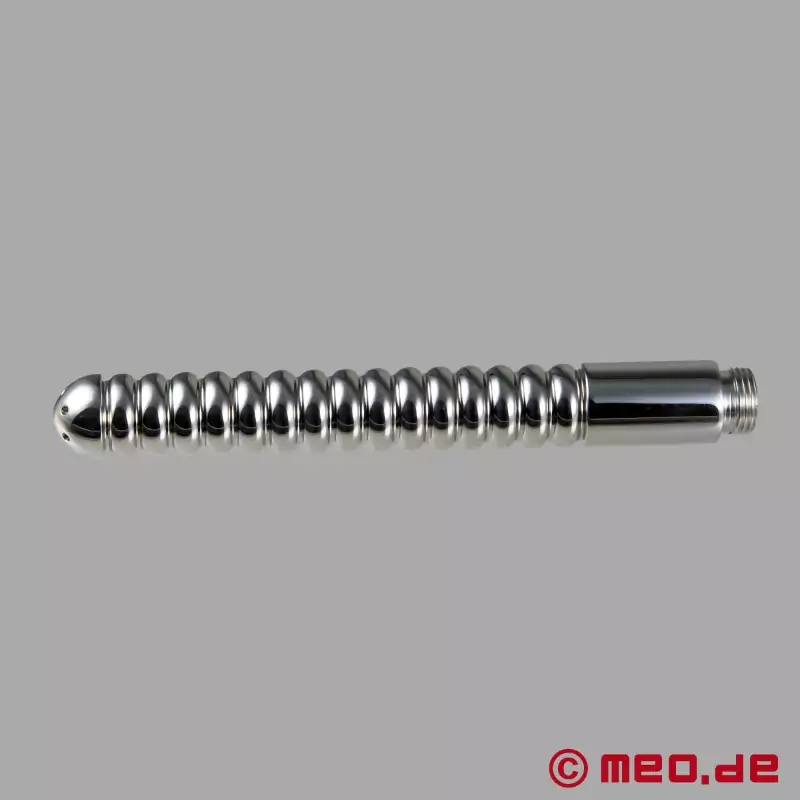 MEO®:n (Saksa) Alpha Male Shower Shot DeLuxe™ on oikea valinta kaikille, jotka etsivät maksimaalista mukavuutta anaalihygienian aikana. Tämä ylellinen anaalisuihku tai intiimisuihku, joka on valmistettu hygieenisestä täysmetallista, on erityisesti suunniteltu tarjoamaan perusteellista mutta aistikkaan miellyttävää valmistautumista intensiivisiin eroottisiin kokemuksiin.