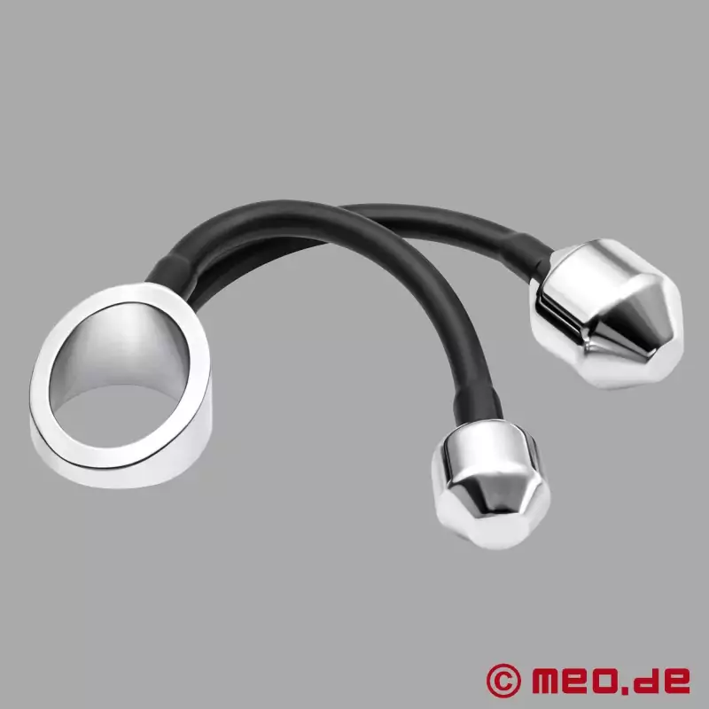 Der Penisring mit 2 schweren Plug-Gewichten beschert mir unnachahmliche Feelings! Der Penisring sorgt für eine Stauung des Blutes im Penis. Die zusätzlich anal eingeführten Plug-Gewichte stimulieren dabei meinen Schließmuskel und verstärken somit meine härtere Erektion. Bei jeder Bewegung meines Penis werden dann der Schließmuskel und die Prostata erregend massiert. Man kannst die gewichtigen Plugs auch einfach nur baumeln lassen. Auch so wird der Blutstau-Effekt wirkungsvoll unterstützt, sodass ich noch länger beim Sex durchhalten kann.