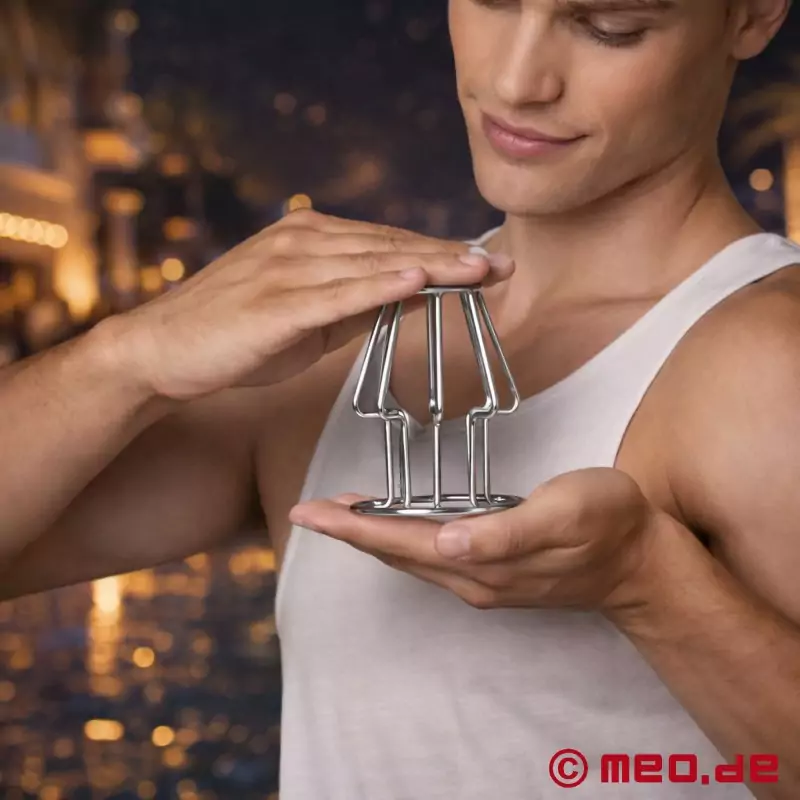 MEO ®:n Anal Cage pitää peräaukon laajasti auki, takaa äärimmäiset tuntemukset ja venyttää peräaukkoa tehokkaasti, selvästi näkyvillä tuloksilla. Näin alttiina oleminen on yksinkertaisesti sanoinkuvaamatonta!