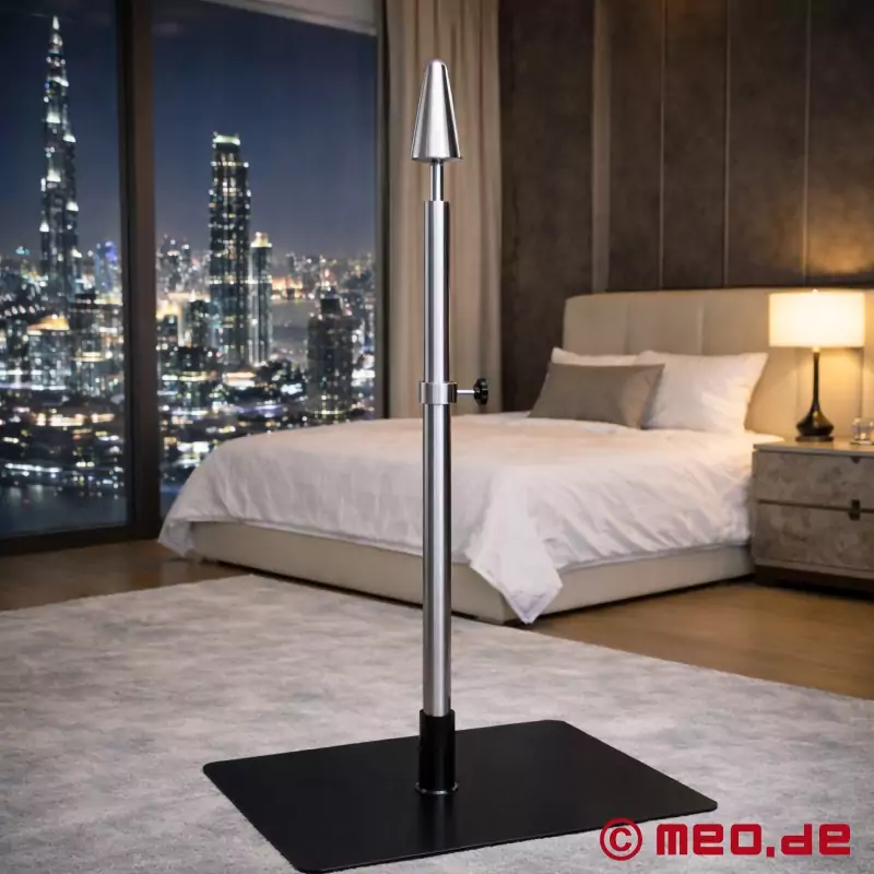Mit dem Dildo-Pranger von MEO bringen Sie Ihre Lieblings-Fantasien in die Realität und setzen dominante BDSM-Szenarien um. Ein stabiler Standfuß sorgt für einen festen Halt der Dildo-Stange. Fixieren Sie Ihren Partner in stehender Position. Ziehen Sie die Teleskopstange anschließend so weit aus, bis der ausgewählte Dildo oder Plug komplett eingeführt ist. Ihr Partner wird dadurch gezwungen die Stellung zu halten, während Sie den Anblick ganz in Ruhe genießen. Die Dildostange wird zusammen mit zwei unterschiedlichen Aufsätzen geliefert! Der klassische Plug sorgt für ein ausfüllendes Vergnügen. Dank der konischen Form dringt der Plug sanft aber bestimmt ein. Der glänzend polierte Dildo stimuliert mit drei dicken Kugeln intensiv alle vaginalen und analen Hotspots. Standplatte und Stange bestehen aus pulverbeschichtetem Metall, die Dildos sind aus Aluminium gefertigt. Alle Komponenten lassen sich einfach zusammenbauen und nach der Verwendung wieder auseinandernehmen, um die Dildo-Stange platzsparend zu verstauen.