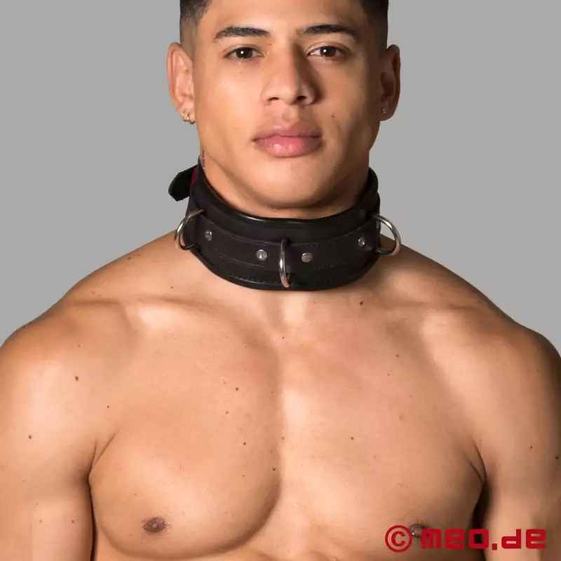 Täysin musta BDSM-kaulus on valmistettu vahvasta naudannahasta, ja siinä on 3 rengasta sidontatarvikkeiden kiinnittämistä varten. Subi voi käyttää BDSM-kaulusta huoletta pitkän aikaa orjuuden aikana ja nauttia maksimaalisesta mukavuudesta.