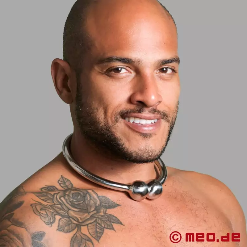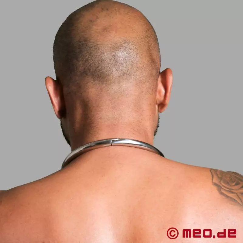 I love this collar, its quality is exceptional as with everything that I have ordered from Meo.de. I love the fact that the magnets make it both easy to fit but they also hold it securely in place. I have had numerous people ask me where I got it from and they love its look. This is a great collar for any submissive or just to wear as a statement. I have the smaller size and it is the perfect fit for me and I love it. I can highly recommend it to anyone. Wearing this collar gives this submissive a huge sense of belonging and I love how it looks. It's quite hard to remove, just as it should be of course. The magnetic orbs do a good job of sealing you inside its cold hard grip.