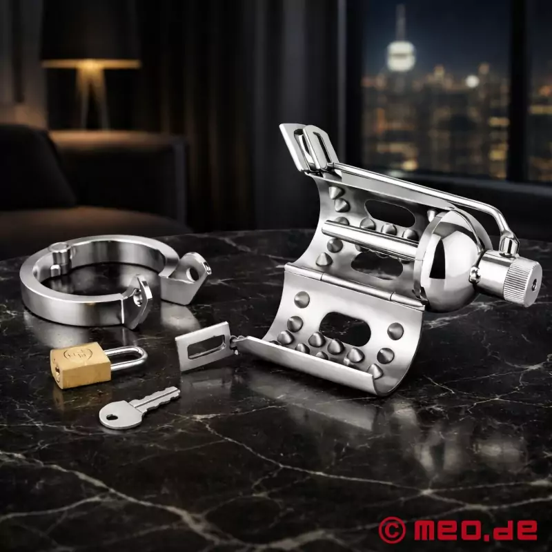 Tämä armoton siveyshäkki on suunniteltu kokeneille BDSM-faneille, jotka haluavat yhdistää siveyden, kurinalaisuuden ja täydellisen hallinnan. Siinä yhdistyvät siveyshäkki, BDSM-lisävaruste ja penispistoke ainutlaatuiseksi kokonaisuudeksi, joka mahdollistaa tiukimman siveyden muodon ja maksimaalisen hallinnan kumppanisi peniksen suhteen.
