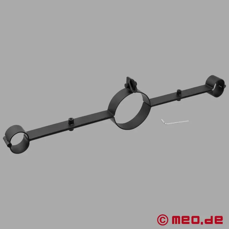 Tämä MEO® Hardline -malliston teräksinen pylväs on moderni uudelleentulkinta historiallisesta pylväästä. Niskatuki ja rannekkeet sisältävä pylväs varmistaa kaulan ja kädet, mikä tekee siitä tinkimättömän BDSM-lisävarusteen klassisen teräksisen orjuuden ystäville.
