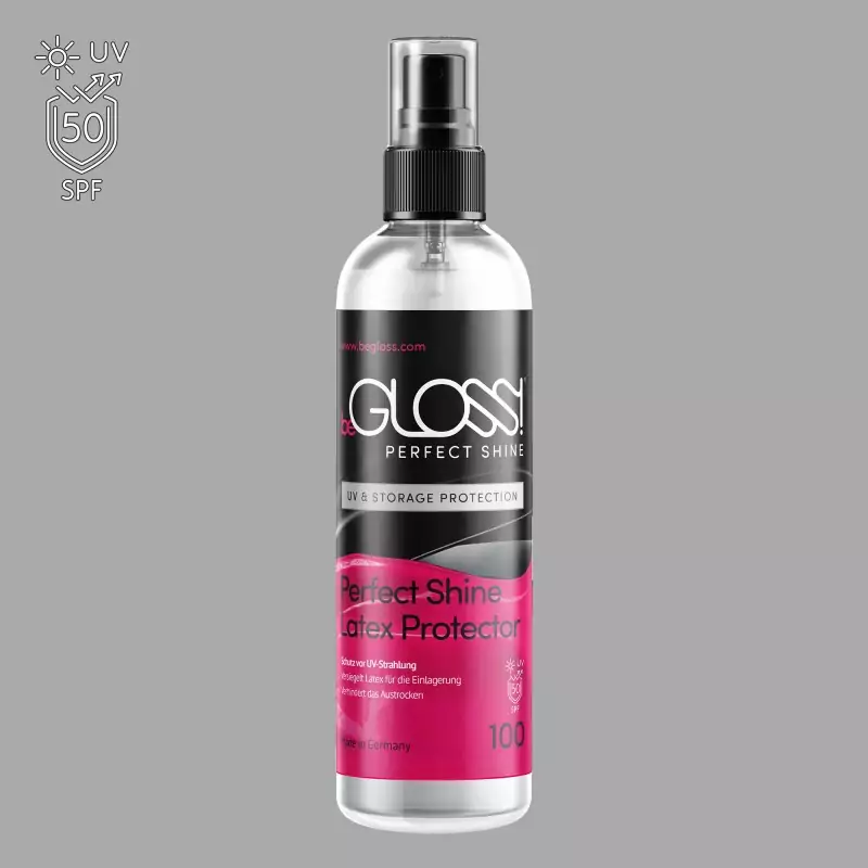 beGLOSS® Perfect Shine™ muodostaa suojakalvon, joka suojaa lateksivaatteita UV-säteiltä ja suojaa niitä haitallisilta vaikutuksilta säilytyksen aikana. Tämä UV- ja varastointisuojaus on erityisen tärkeää kesällä, jotta auringonvalon aiheuttama haalistuminen vähenee ja materiaali suojautuu halkeilulta ja kulumiselta.