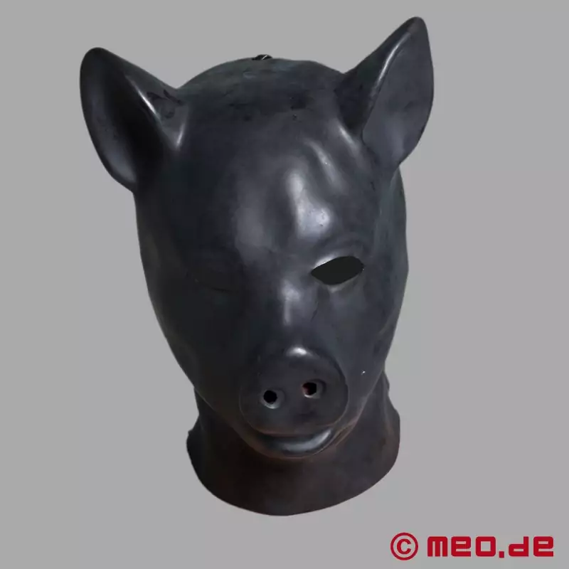Aina silloin tällöin sinun on tehtävä joillekin Subille hyvin selväksi, missä "sosiaalisessa" asemassa he ovat, nimittäin aivan pohjalla! Tähän ei todellakaan ole mitään parempaa kuin MEO®:n vahvasta, mustasta latexista valmistettu sikanaamari. Voit käyttää sitä istunnon aikana tai rangaistusnaamiona ja "motivoida" Subin poistumaan talosta (tai kahlita hänet lähimpään aitaan). Hän murahtaa innoissaan!