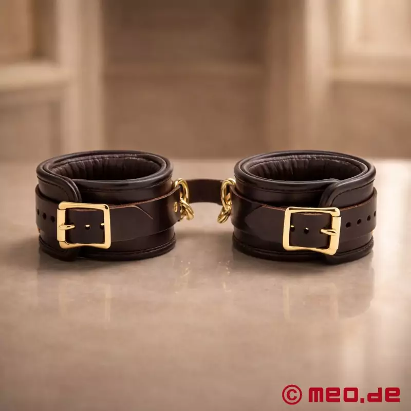 MEO®:n Bohème-malliston käsintehdyt nahkaiset nilkkaraudat ovat täydellinen yhdistelmä eleganssia ja toimivuutta. Nämä hienot nilkkaraudat on valmistettu valikoidusta naudannahasta ja pehmeästä vasikannahasta, mikä tekee niistä erittäin vankat ja kestävät, mutta tarjoaa myös poikkeuksellista mukavuutta BDSM-session aikana.
