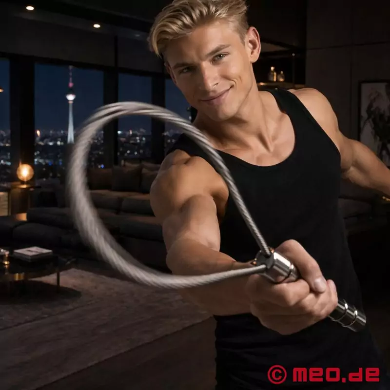 Metallinen BDSM-piiskamme luo juuri sitä, mitä Sub himoitsee: Intensiivistä nautintoa! Suhteellisen lyhyt ruoska mahdollistaa erityisen voimakkaat iskut ja on siksi erityisen miellyttävä hyvin dominoiville herroille.