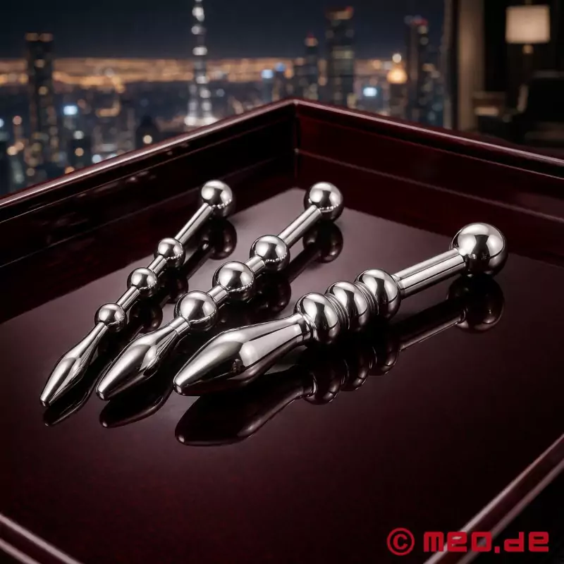 Tutustu virtsaputken stimulaation kiehtovaan maailmaan korkealaatuisesta ruostumattomasta teräksestä valmistetun Hard Playmate -penispistokkeen avulla. Täydellisesti muotoiltu ja saatavilla kolmessa eri koossa, tämä penistulppa on ihanteellinen virtsaputken voimakkaaseen stimulaatioon ja asteittaiseen laajentamiseen.