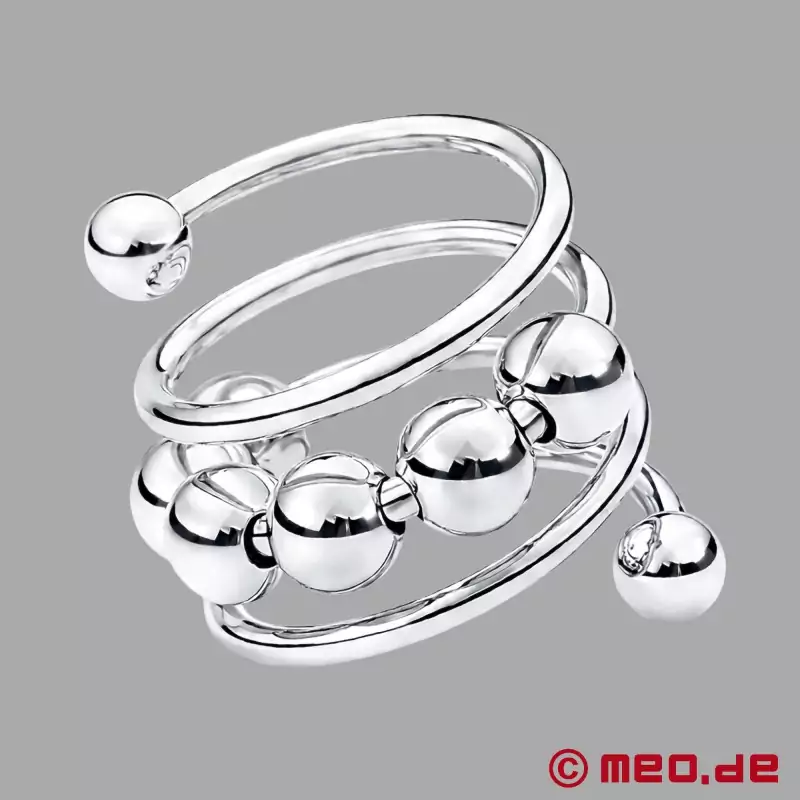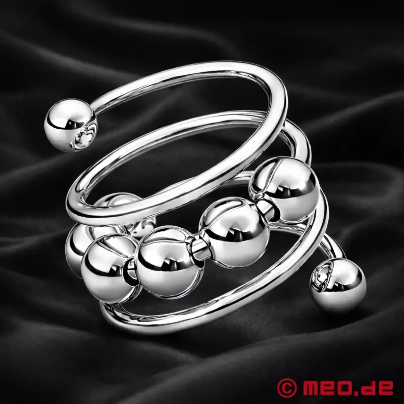 ORBIT on hieno valinta miehille, jotka haluavat kokeilla ja jotka etsivät tyylikästä lisäystä intiimikorukokoelmaansa ja samalla löytävät uudenlaisen stimulaation puolen. Viileä ruostumattomasta teräksestä valmistettu kierre kiertyy kolme ja puoli kertaa peniksen varren ympäri ja tarjoaa aivan erityisen tunteen. Erityinen lisä? 10 mm:n liikkuva ruostumattomasta teräksestä valmistettu pallo, jonka voi sijoittaa juuri sinne, missä se sytyttää himosi syvimmin. Haluatko lisää? Lisää vain lisää palloja ja koe räätälöity nautinto, joka saa sinut henkeäsalpaamaan.