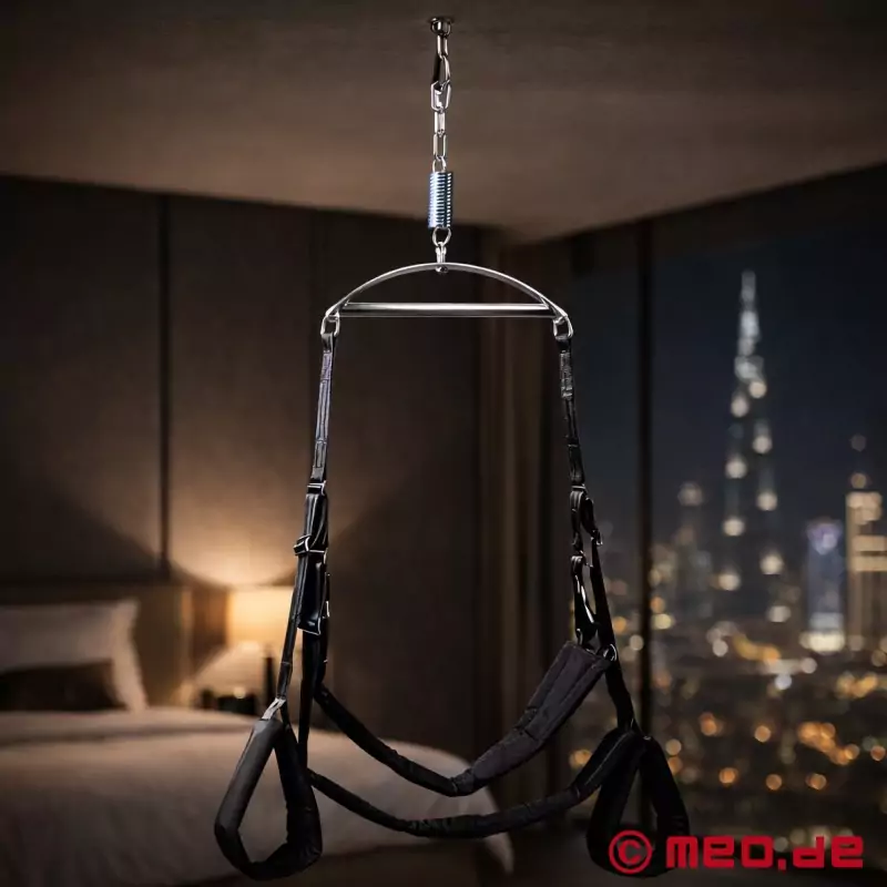 You won't believe what you can do with this swing! Enjoy totally new dimensions of play – the BDSM Swing makes countless positions possible. slighty adjustable straps. Comes with a special spring. Max. load 150 kg. User manual and tips for positions included.