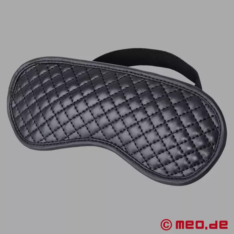 Eksklusiiviseen sarjaan kuuluu bondage-panta, rannekkeet, nilkkaraudat, BDSM-hihna ja tämä silmämaski. Timanttitikkauksen ansiosta kaikki tuotteet ovat visuaalisesti ja teknisesti koordinoituja.