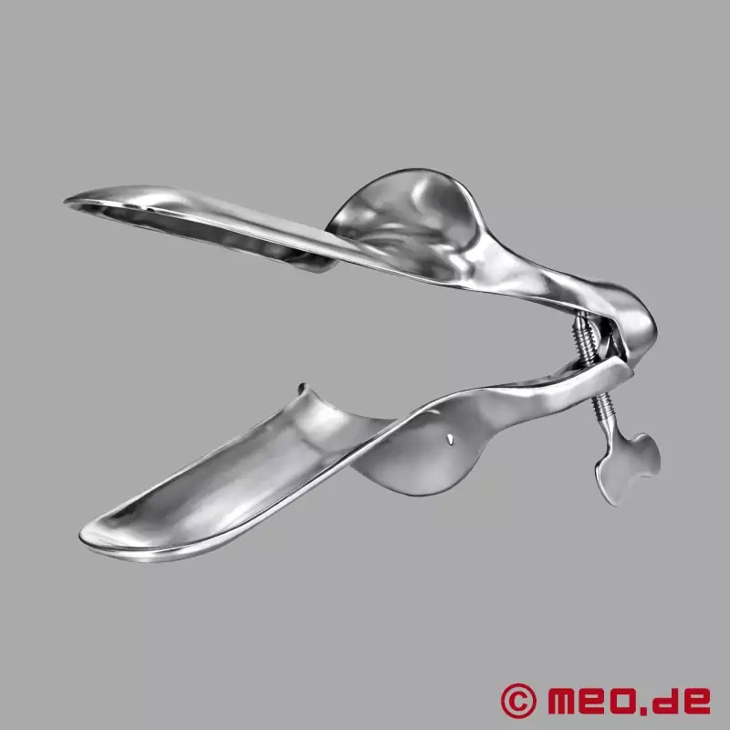 Dieses Spekulum ist für mich das beste überhaupt. Erstens überzeugt die Größe. Zweitens hält es von alleine im Loch, weil die Blätter an den Enden weit auseinander gehen und so alles schön freihändig im Loch bleibt. Drittens stört keine andere Mechanik den total freien Blick dort rein, wo sonst kein Licht hinkommt. Man fühlt sich damit total exponiert und offen. Ein herrlich peinliches Gefühl!
