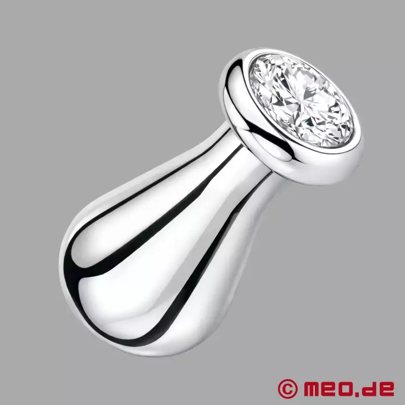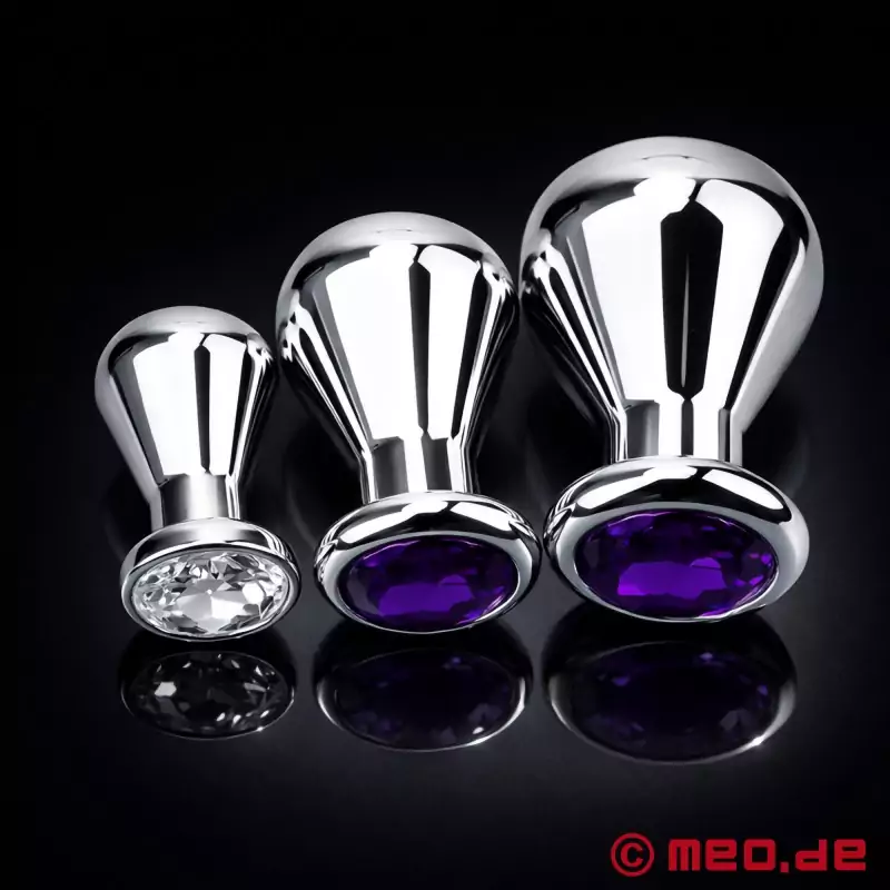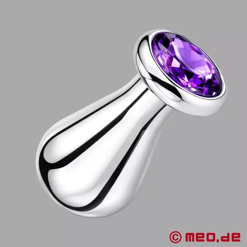 Kürzlich habe ich den birnenförmigen Buttplug aus Edelstahl mit dem auffälligen violetten Kristall am Stopper getestet und bin absolut begeistert! Schon beim Auspacken fiel mir die hochwertige Verarbeitung auf. Der Edelstahl glänzt elegant und liegt angenehm schwer in der Hand, was bereits einen Vorgeschmack auf die Qualität des Produktes gibt.